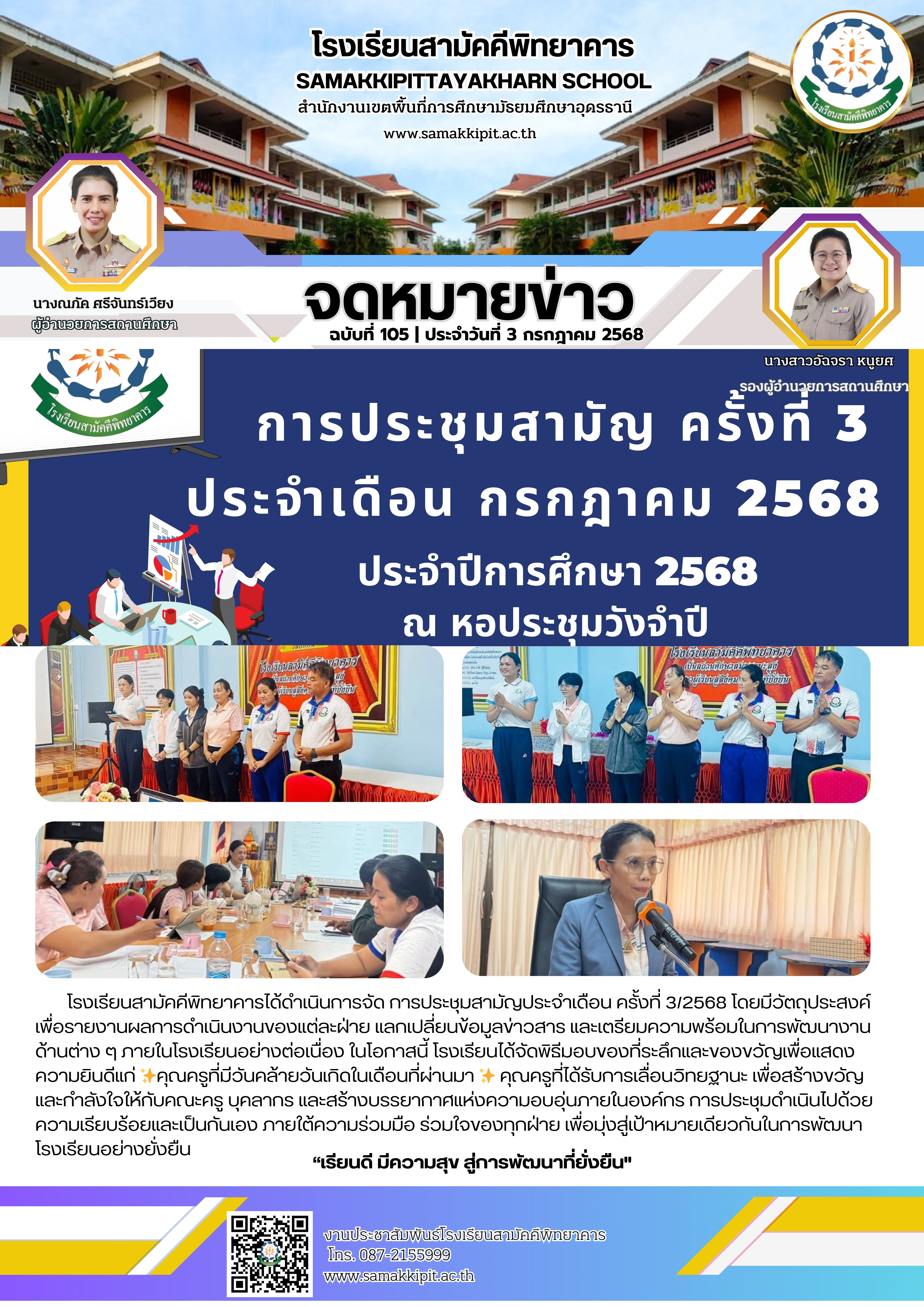 โรงเรียนสามัคคีพิทยาคารได้ดำเนินการจัด การประชุมสามัญประจำเดือน ครั้งที่ 3/2568 โดยมีวัตถุประสงค์เพื่อรายงานผลการดำเนินงานของแต่ละฝ่าย แลกเปลี่ยนข้อมูลข่าวสาร และเตรียมความพร้อมในการพัฒนางานด้านต่าง ๆ ภายในโรงเรียนอย่างต่อเนื่อง