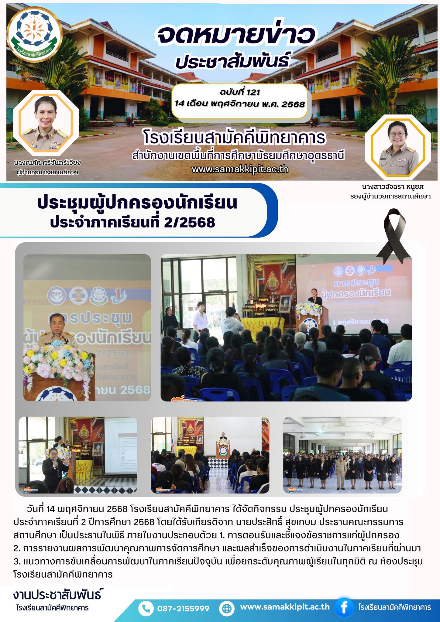 วันที่ 14 พฤศจิกายน 2568 โรงเรียนสามัคคีพิทยาคาร ได้จัดกิจกรรม ประชุมผู้ปกครองนักเรียน ประจำภาคเรียนที่ 2 ปีการศึกษา 2568