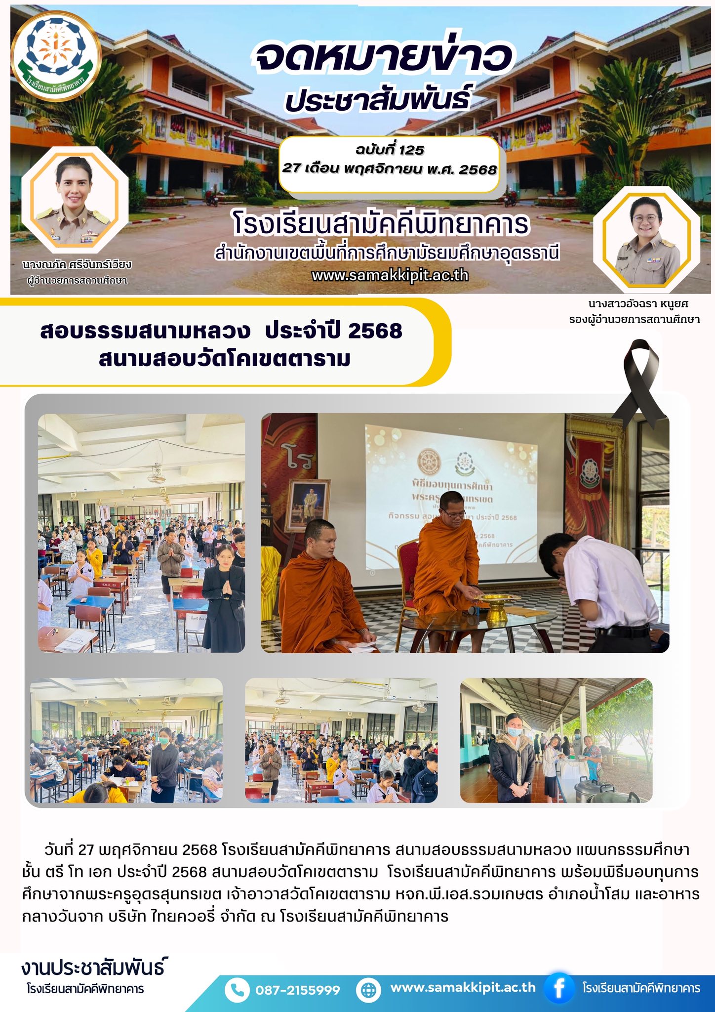 วันที่ 27 พฤศจิกายน 2568 โรงเรียนสามัคคีพิทยาคาร สนามสอบธรรมสนามหลวง แผนกธรรมศึกษา ชั้น ตรี โท เอก ประจำปี 2568