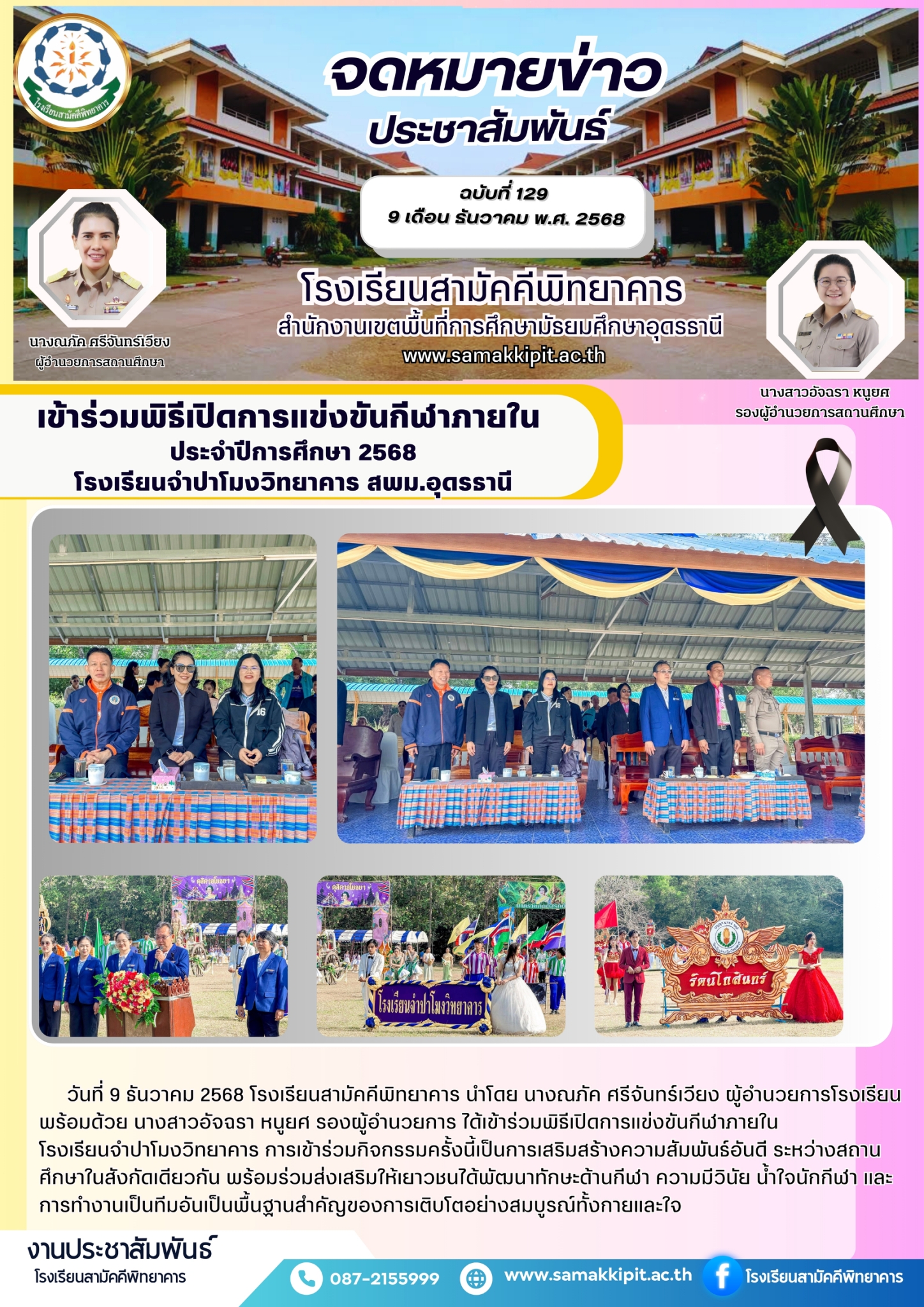 โรงเรียนสามัคคีพิทยาคาร เข้าร่วมพิธีเปิดการแข่งขันกีฬาภายใน ประจำปีการศึกษา 2568 โรงเรียนจำปาโมงวิทยาคาร สพม.อุดรธานี