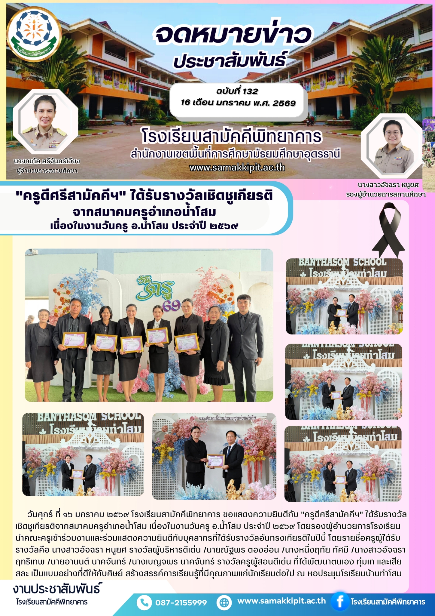 "ครูดีศรีสามัคคีฯ" ได้รับรางวัลเชิดชูเกียรติ จากสมาคมครูอำเภอน้ำโสม เนื่องในงานวันครู อ.น้ำโสม ประจำปี ๒๕๖๙