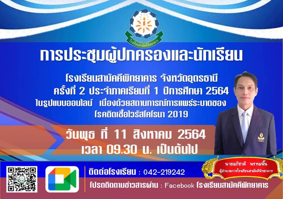 รียนสามัคคีพิทยาคาร ขอเรียนเชิญท่านผู้ปกครองและนักเรียนทุกคน เข้าร่วมประชุมออนไลน์ ผ่านระบบ google meet ในวันพุธ ที่ 11 สิงหาคม 2564 เวลา 09.30 เป็นต้นไป ตามลิงค์ที่แนบมานี้ https://meet.google.com/o
