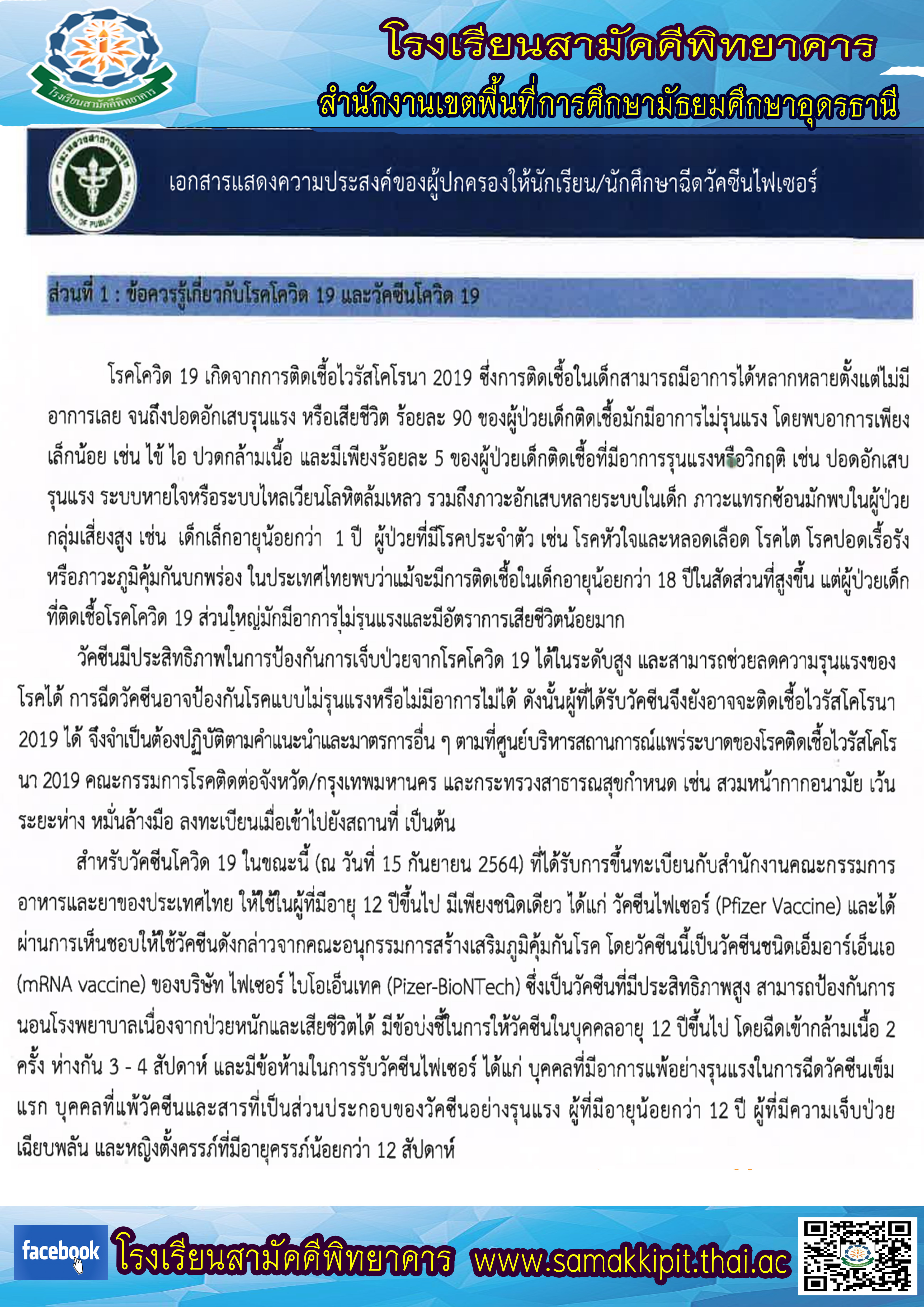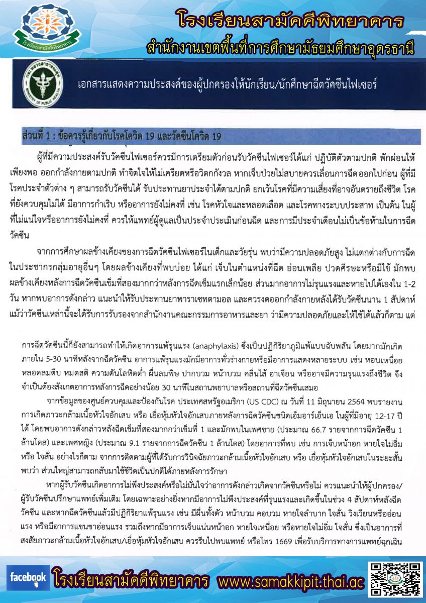ข่าวประชาสัมพันธ์ เรื่องข้อควรรู้เกี่ยวกับโรคโควิด-19 และวัคซีน โควิด-19