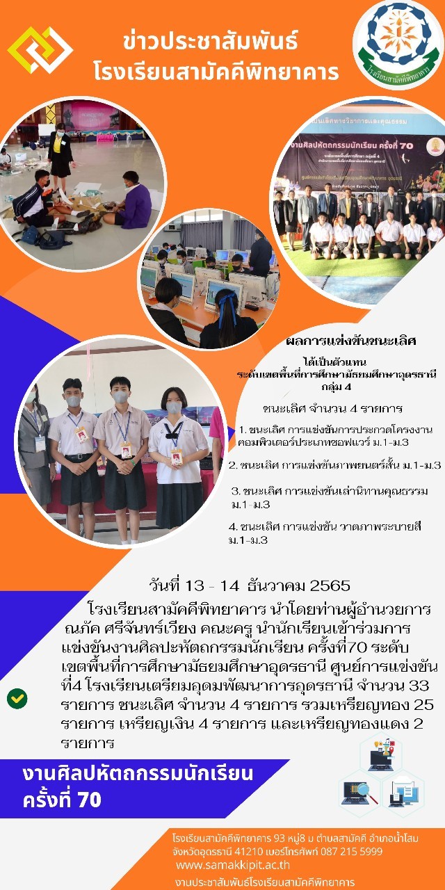 โรงเรียนสามัคคีพิทยาคาร นำโดยท่านผู้อำนวยการ ณภัค ศรีจันทร์เวียง คณะครู นำนักเรียนเข้าร่วมแข่งแขัน งานศิลปะหัตถกรรมนักเรียน ครั้งที่ 70 ระดับเขตพื้นที่การศึกษา กลุ่ม4