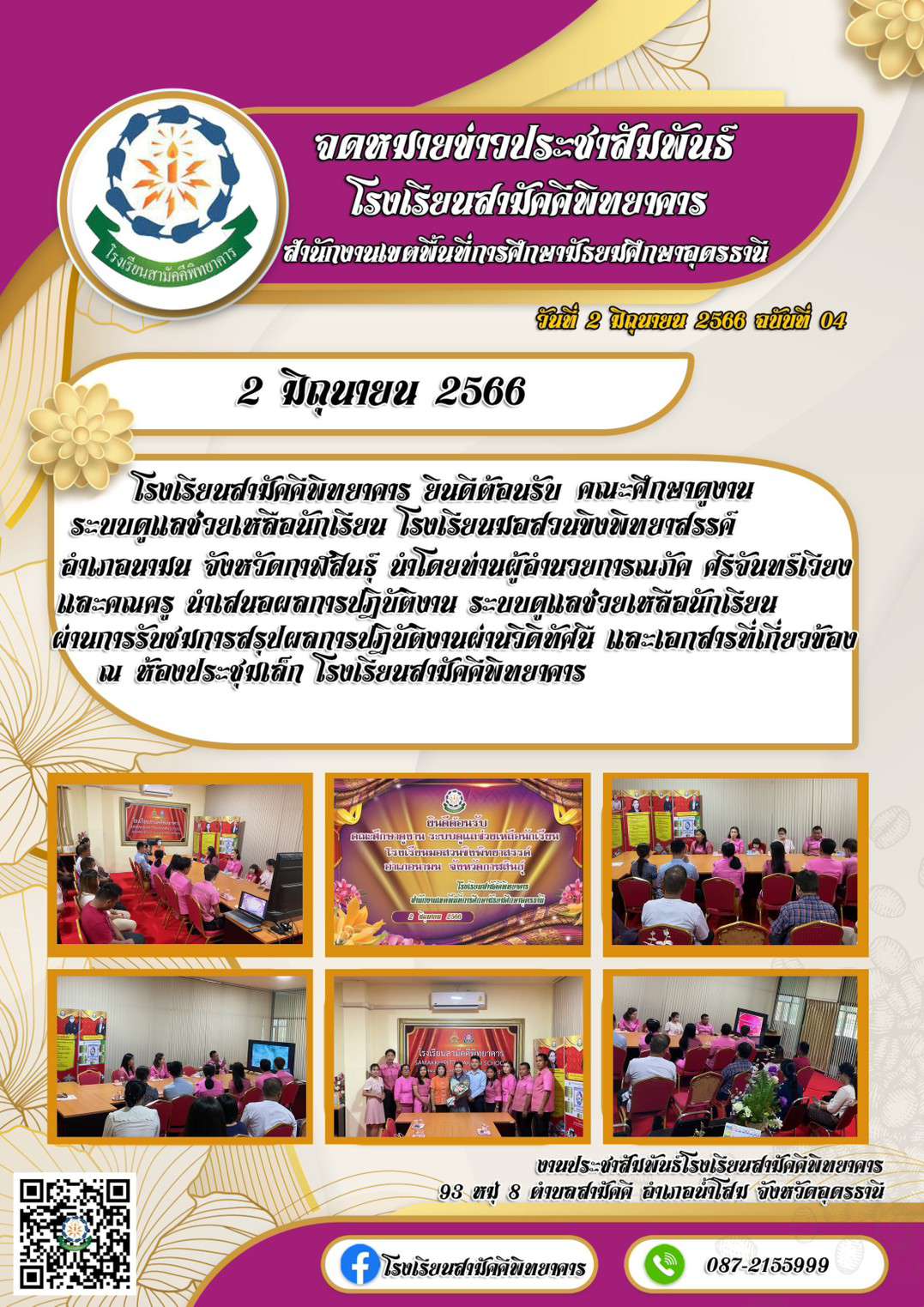 โรงเรียนสามัคคีพิทยาคาร ยินดีต้อยรับ คณะศึกษาดูงานระบบดูแลช่วยเหลือนักเรียน จากโรงเรียน มอสวนขิงพิทยาสรรค์ จังหวัดกาฬสินธุ์